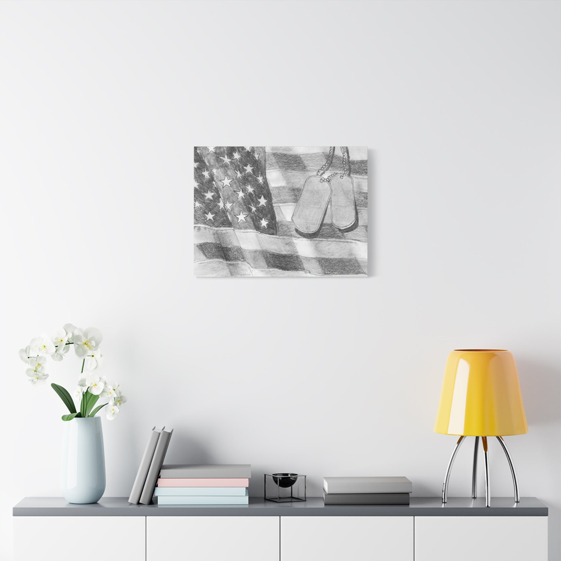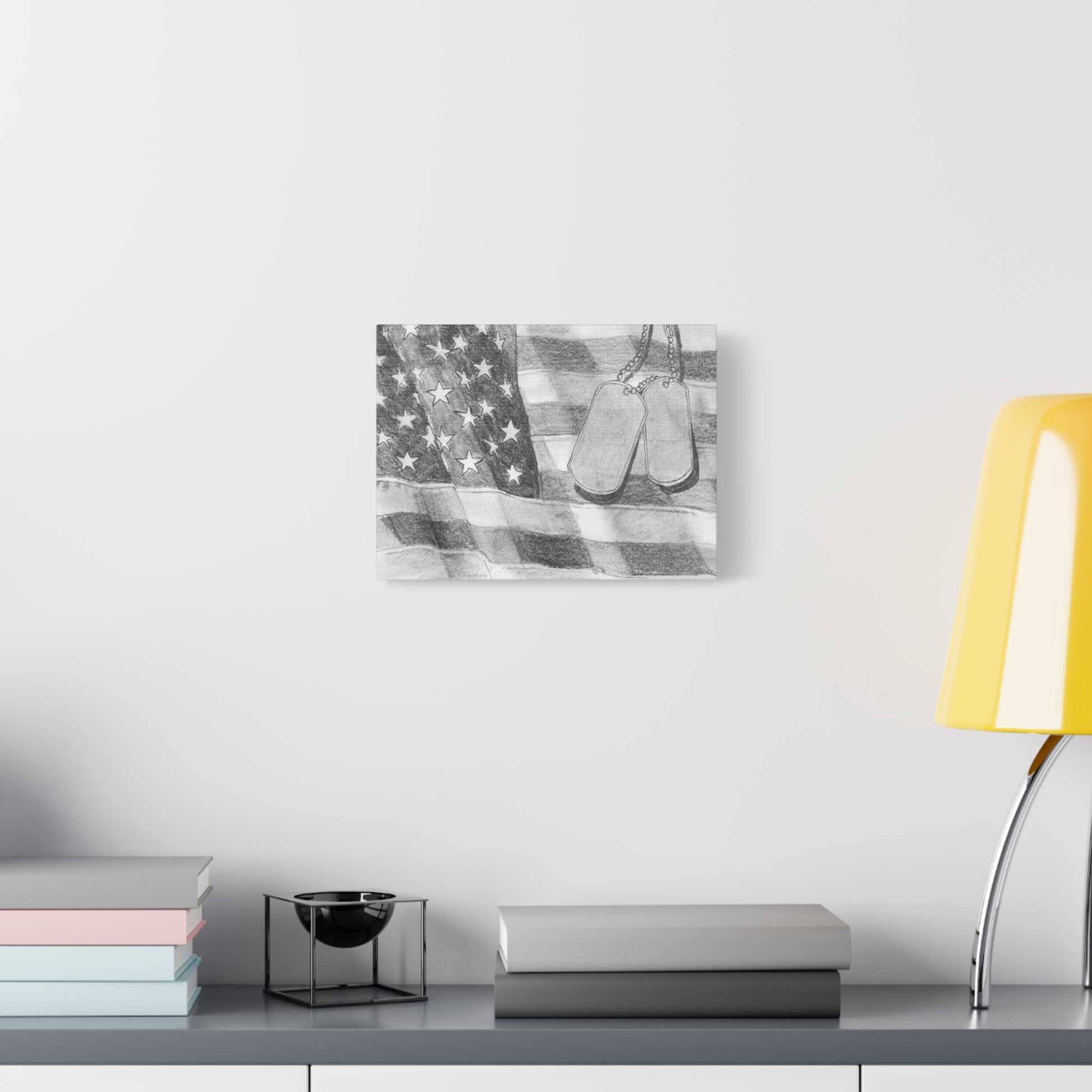 “Freedom and Honor” – American Flag and Dog Tags Pencil Canvas Art