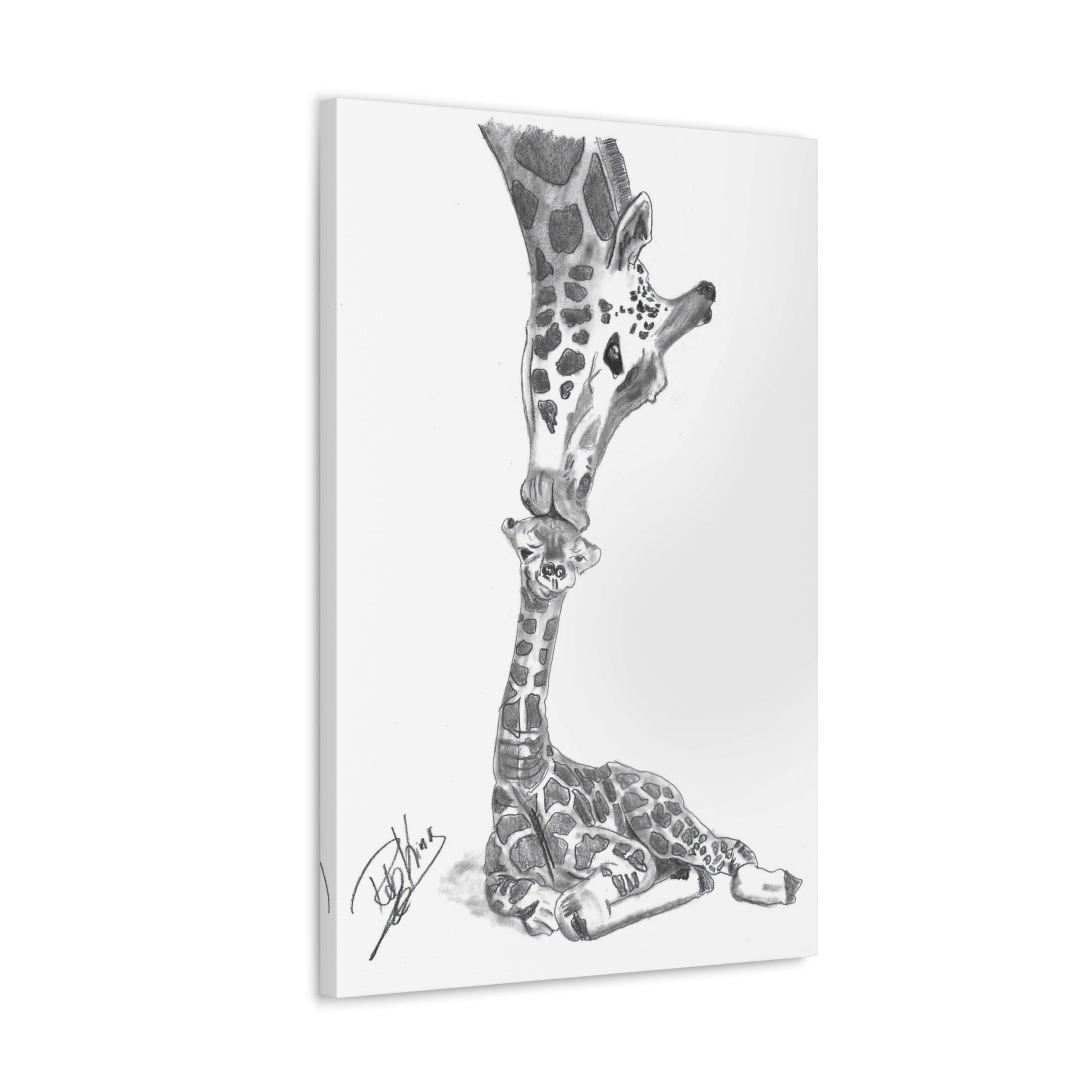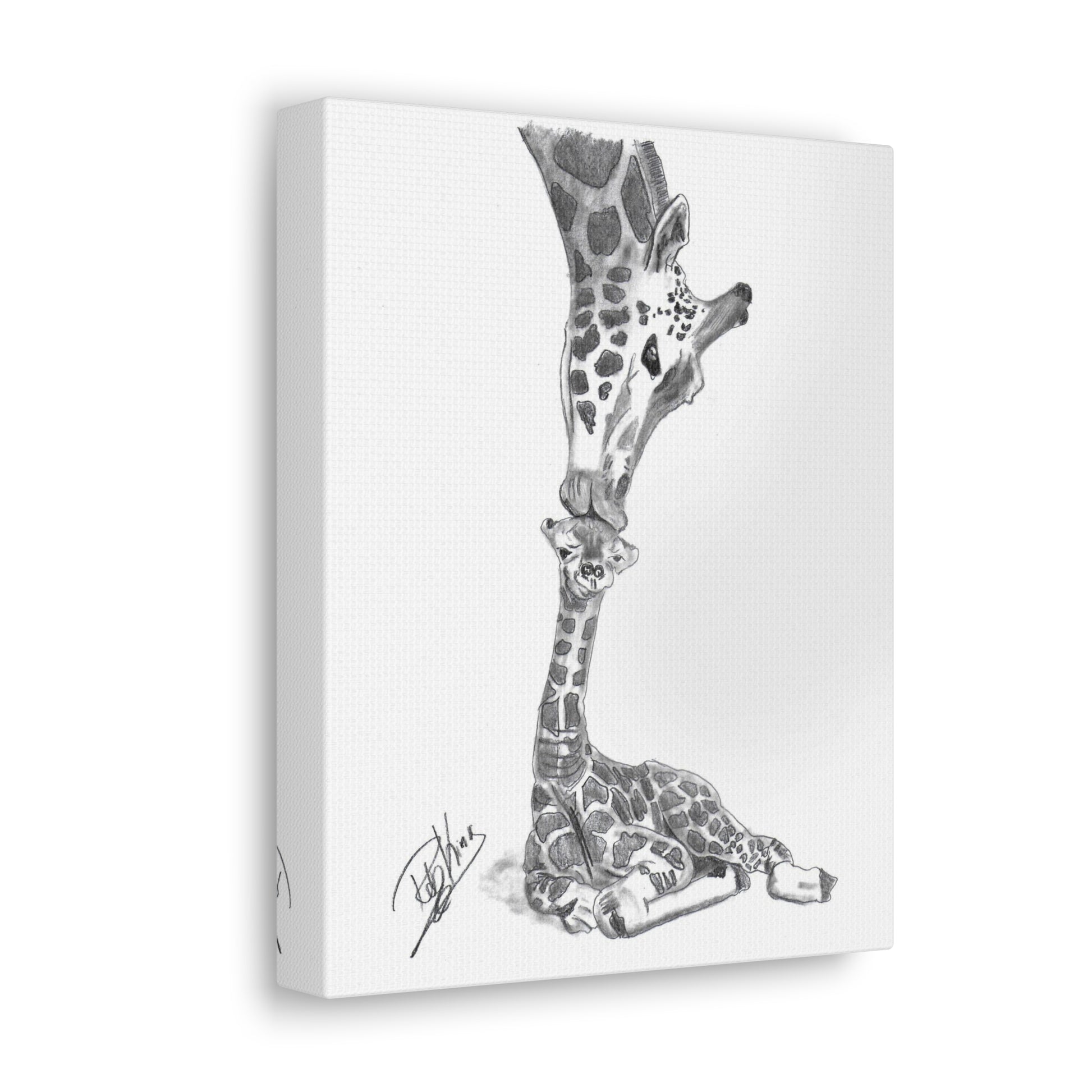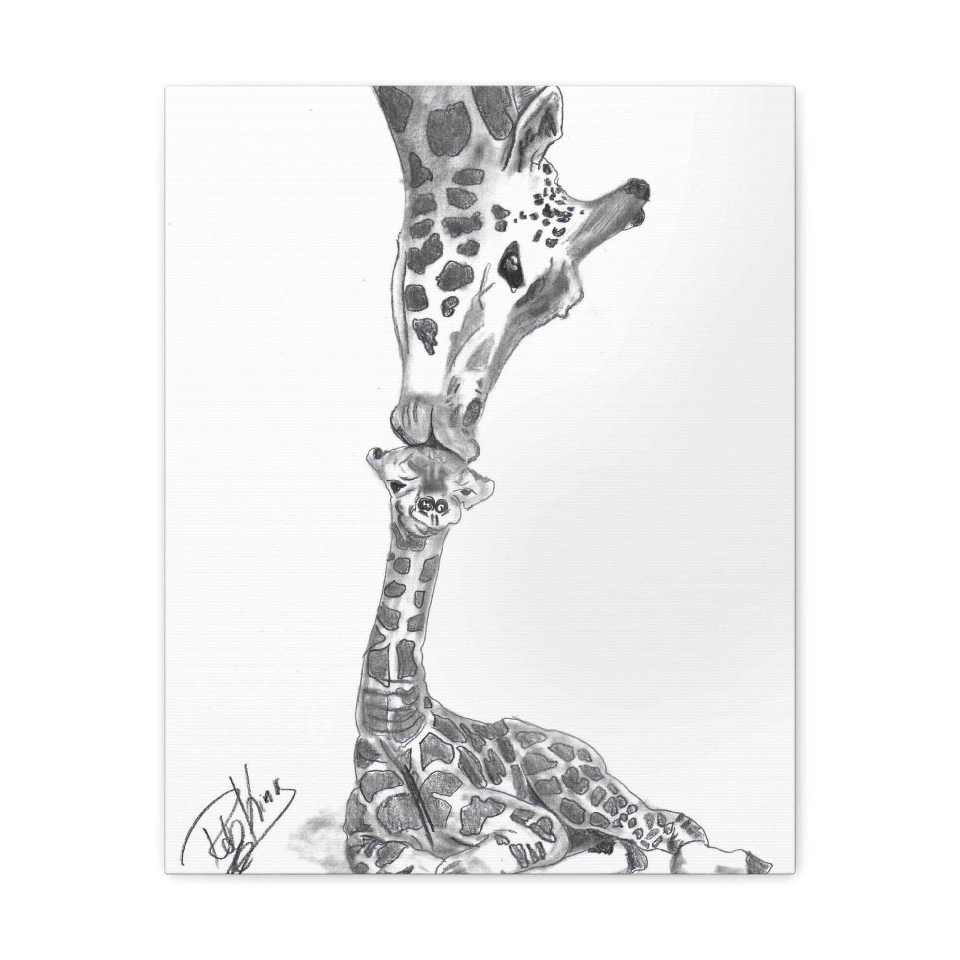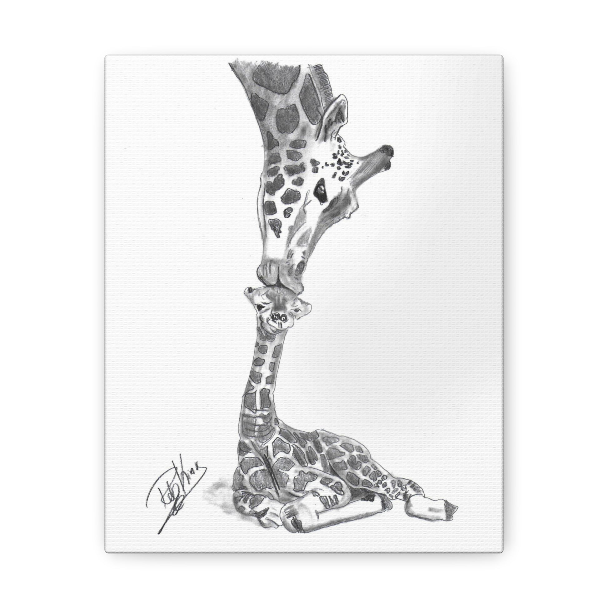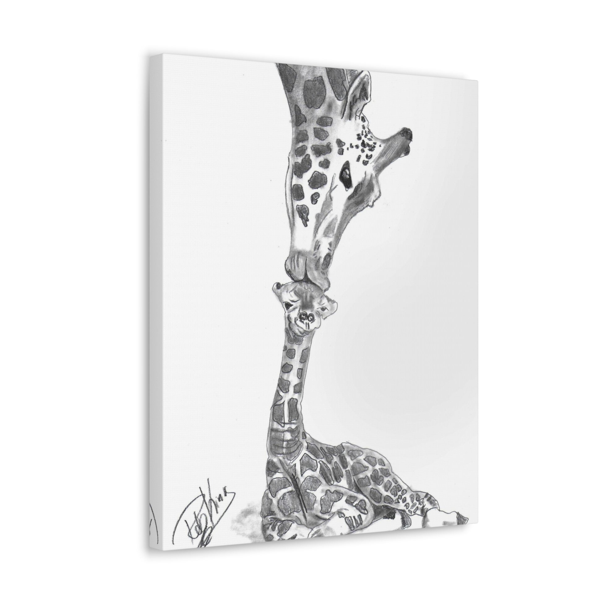 Giraffe Mother Child Kiss - Canvas Gallery Wraps
