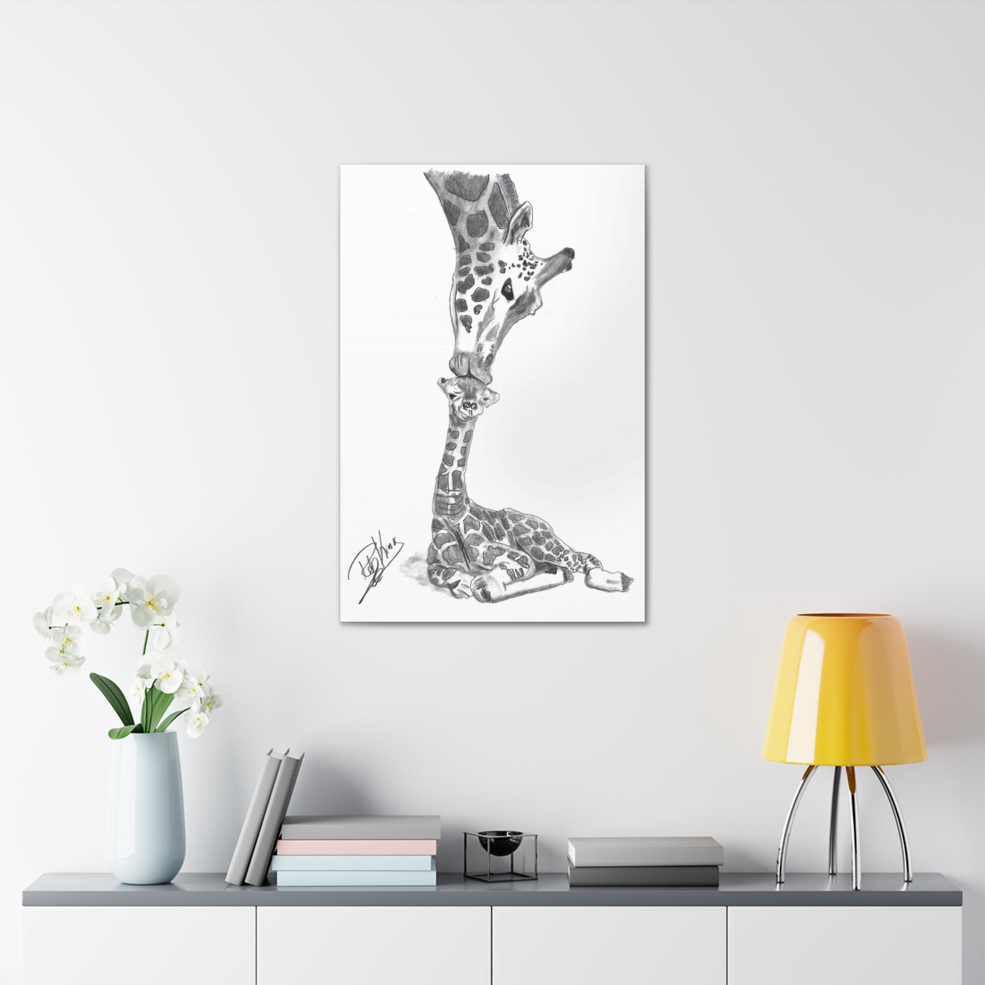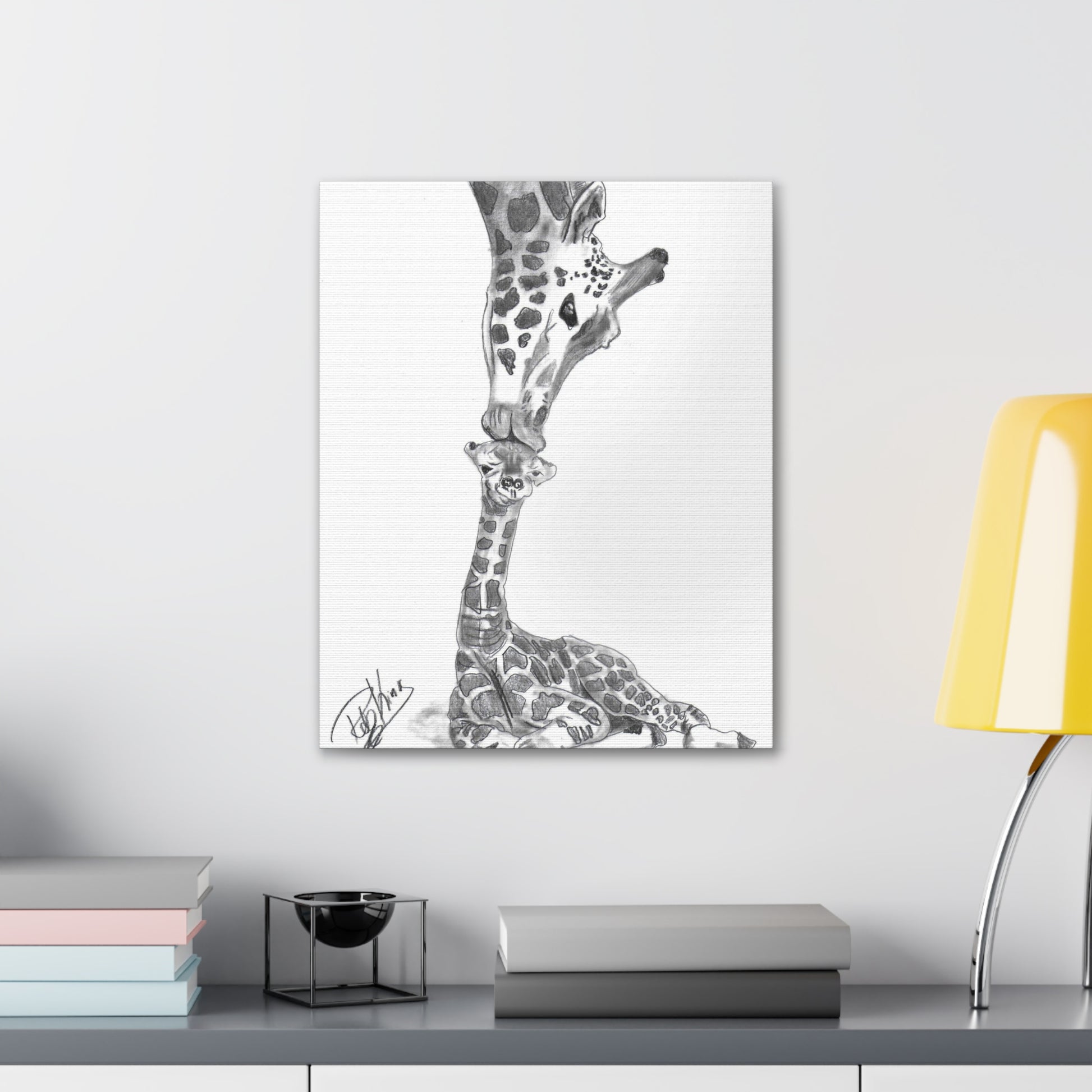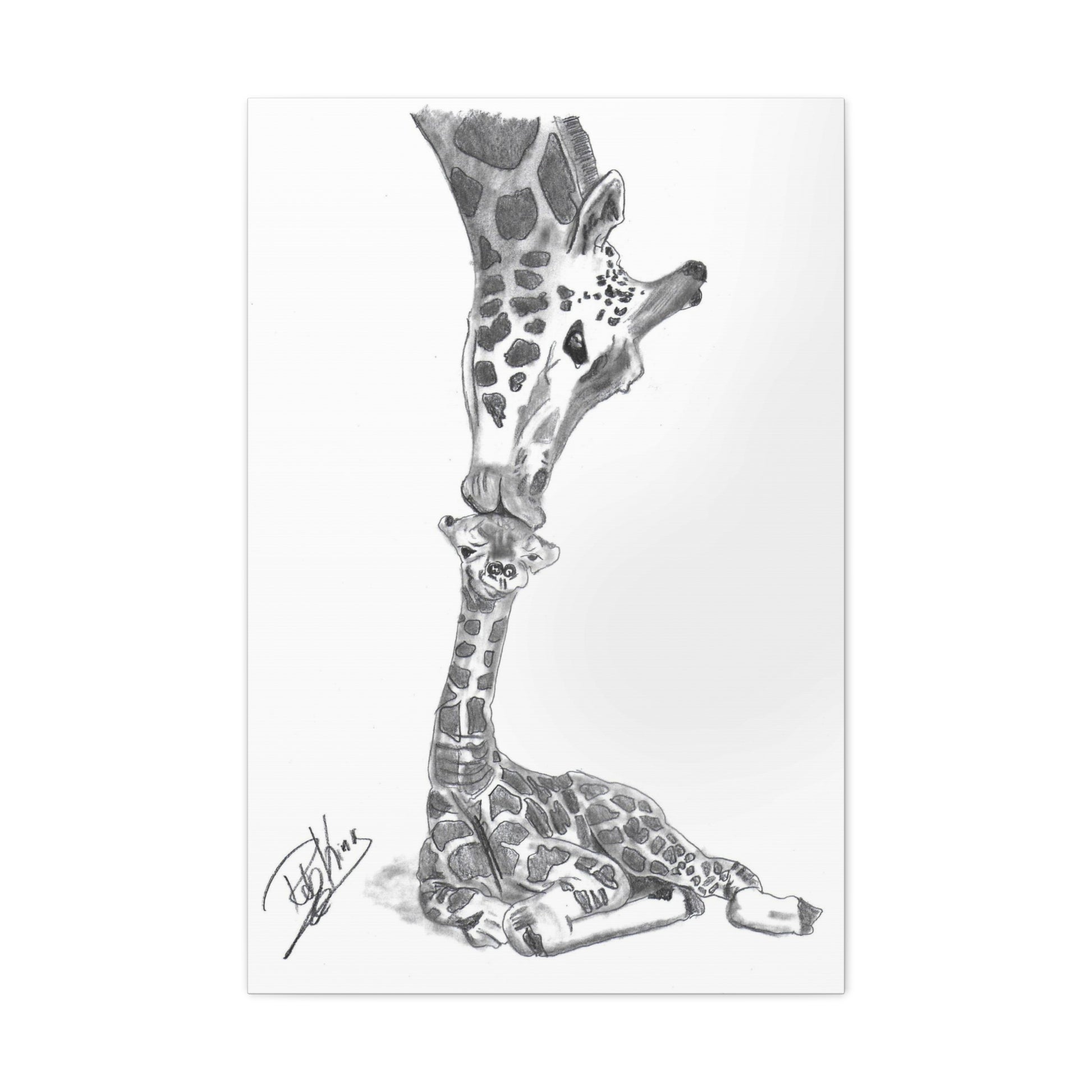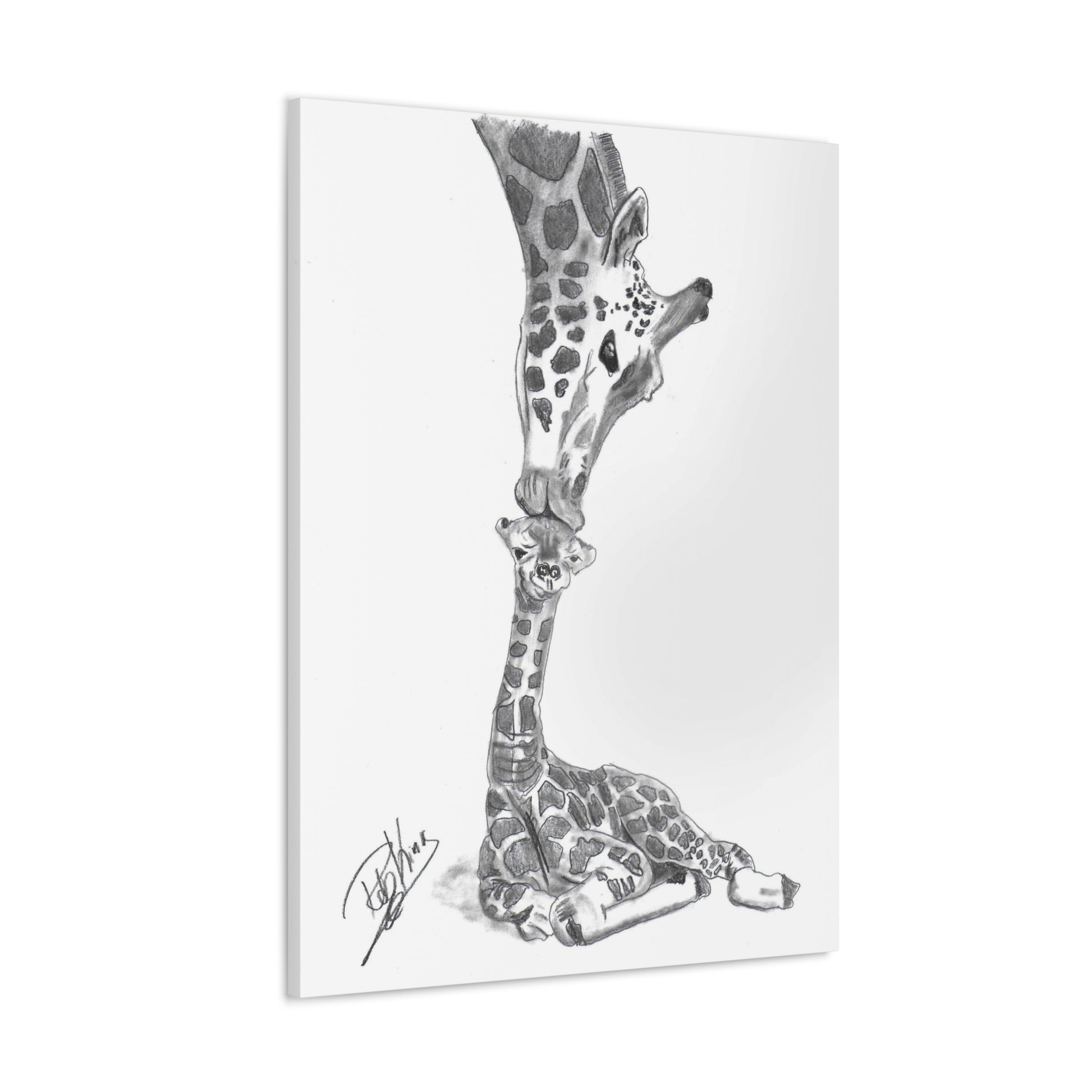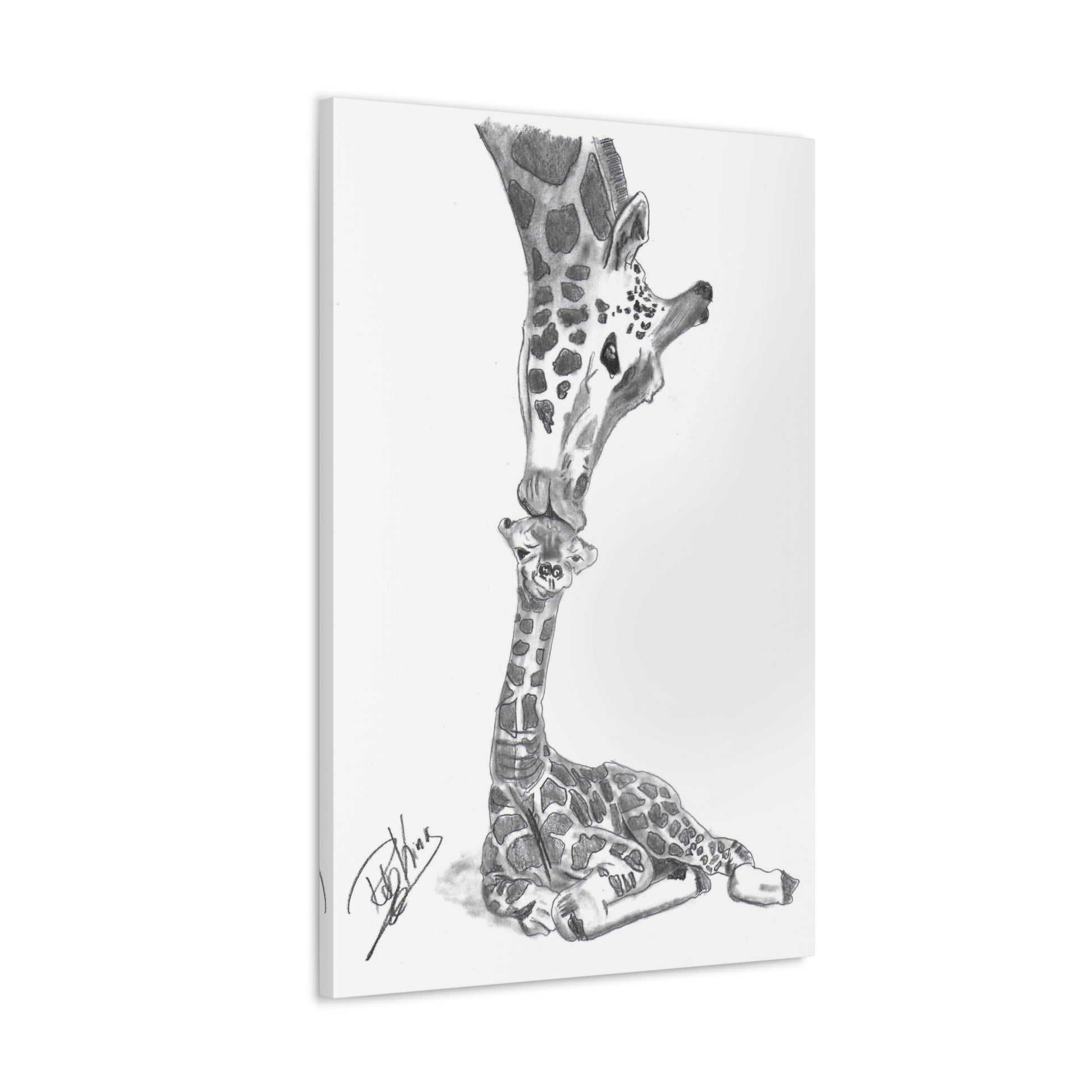 Giraffe Mother Child Kiss - Canvas Gallery Wraps