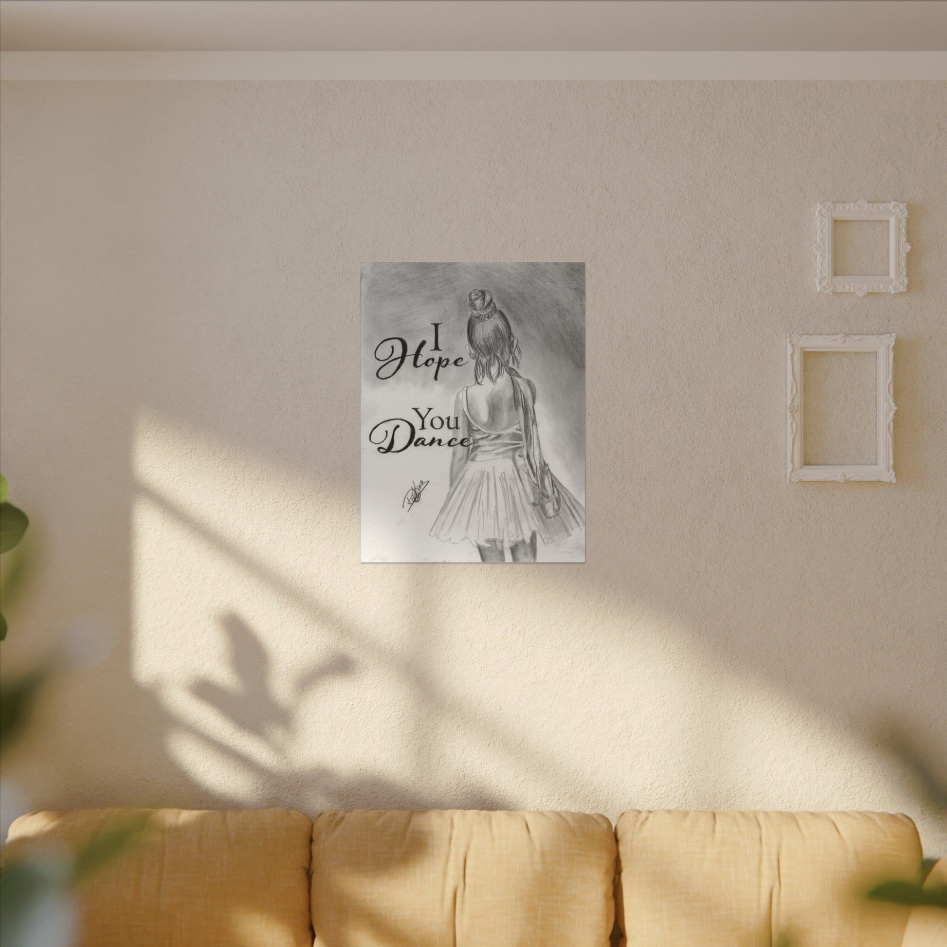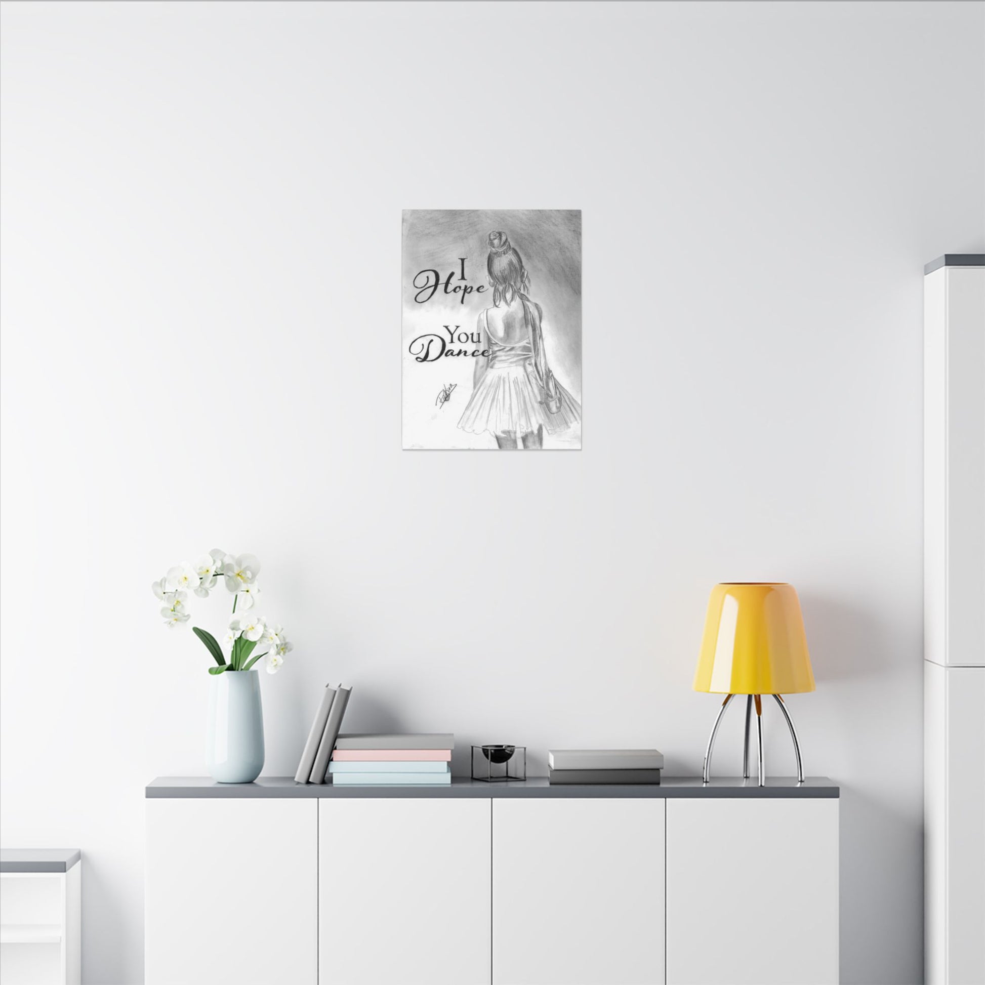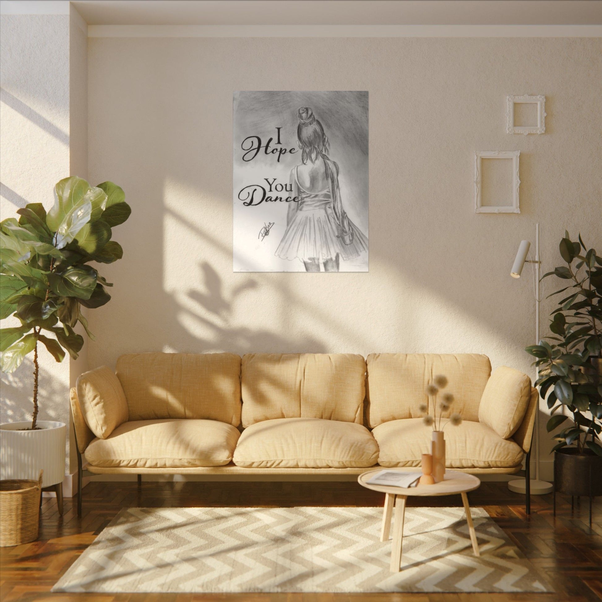 Set against a soft, textured backdrop, the elegant script of the words “I Hope You Dance” weaves a heartfelt message into the artwork—an inspiring reminder to pursue life boldly, with grace and courage. Whether for a dance studio, a child’s room, or a thoughtful gift, this canvas evokes emotion and motivation with every glance.