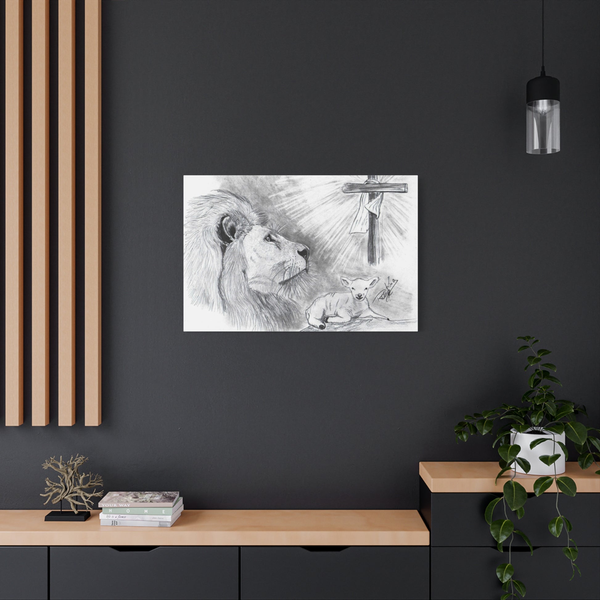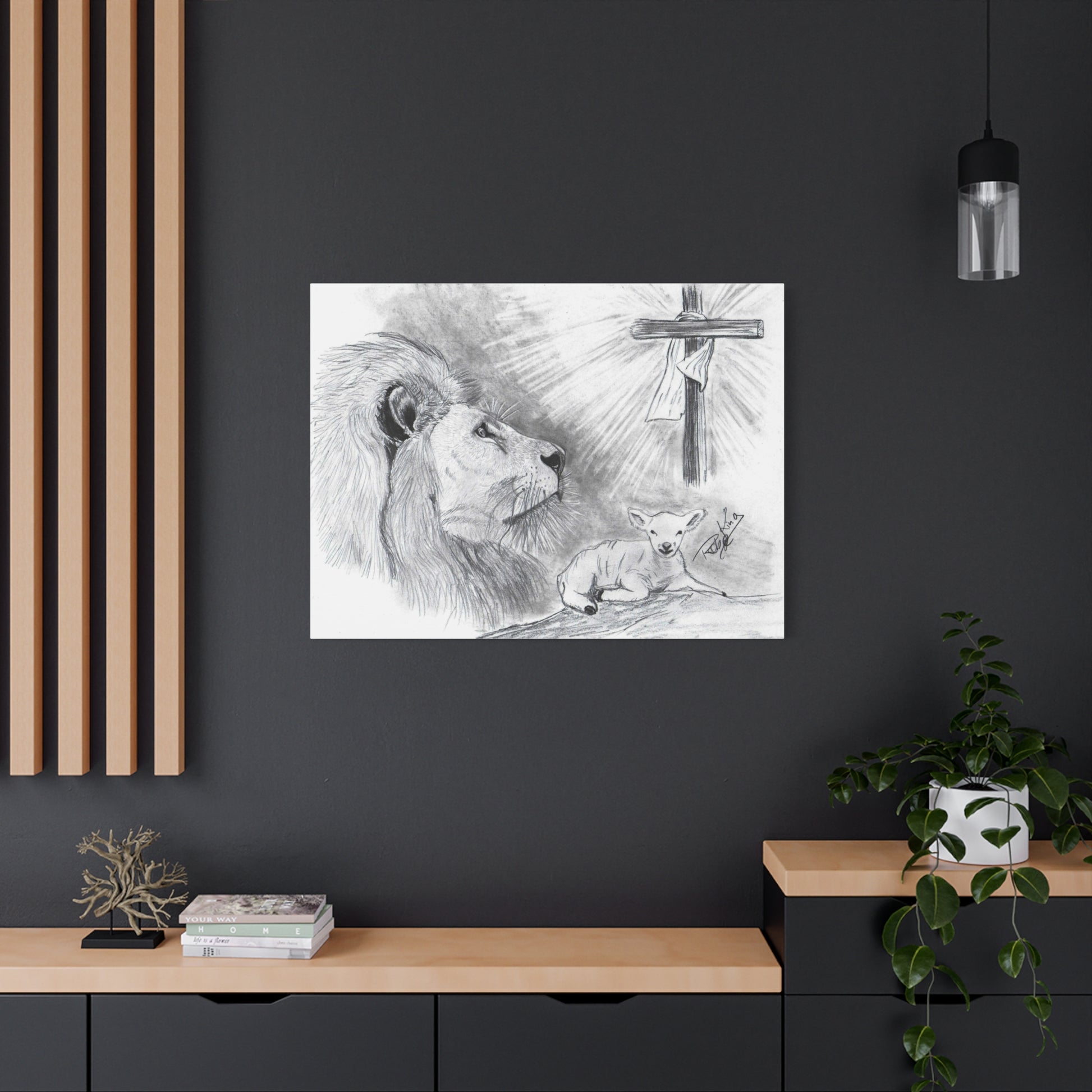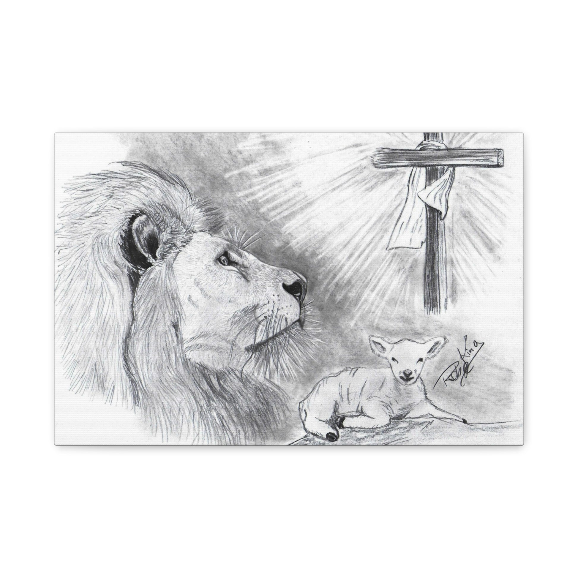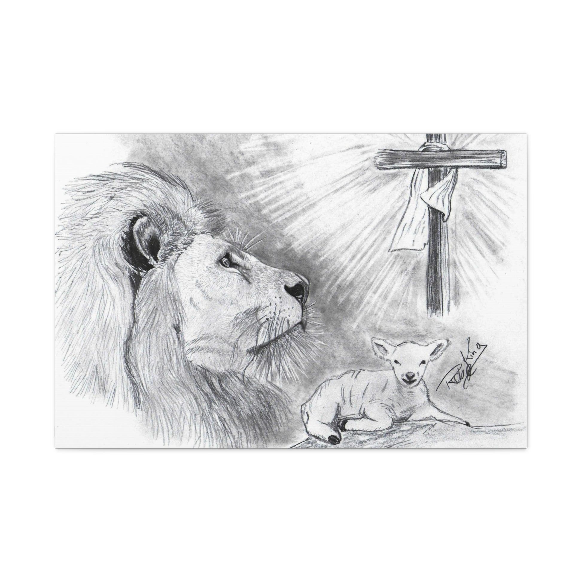 “Lion and the Lamb” – Christian Symbolism Pencil Canvas Art