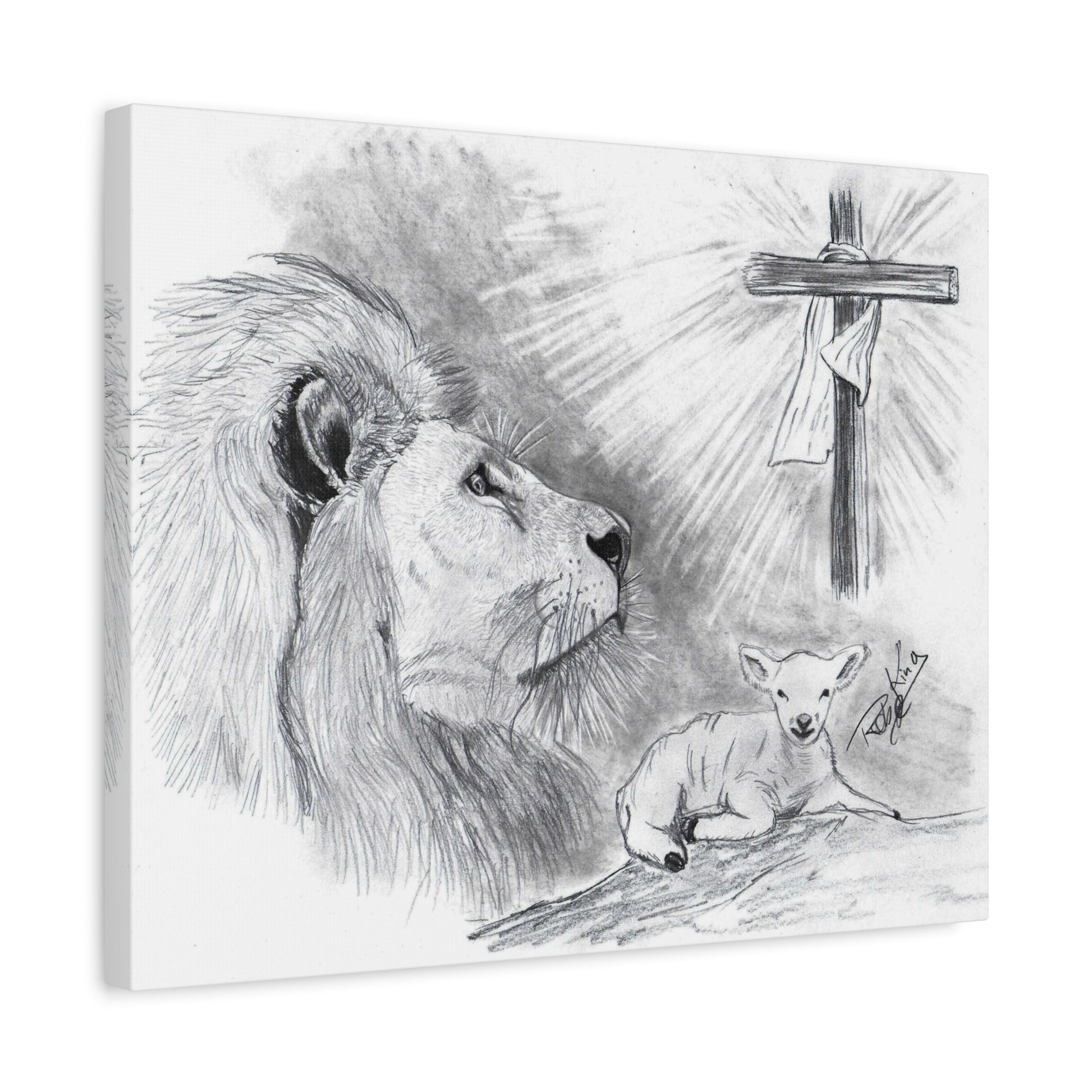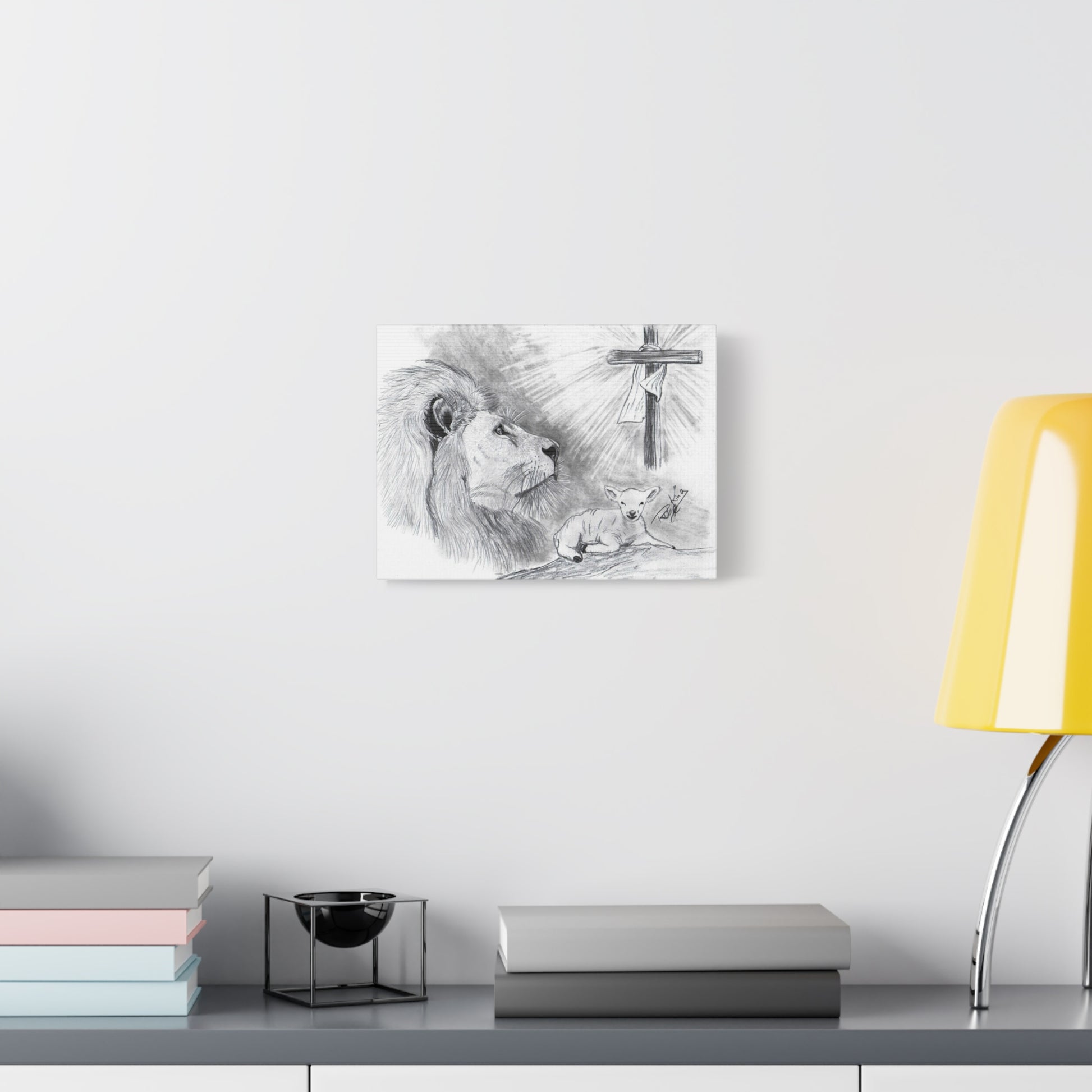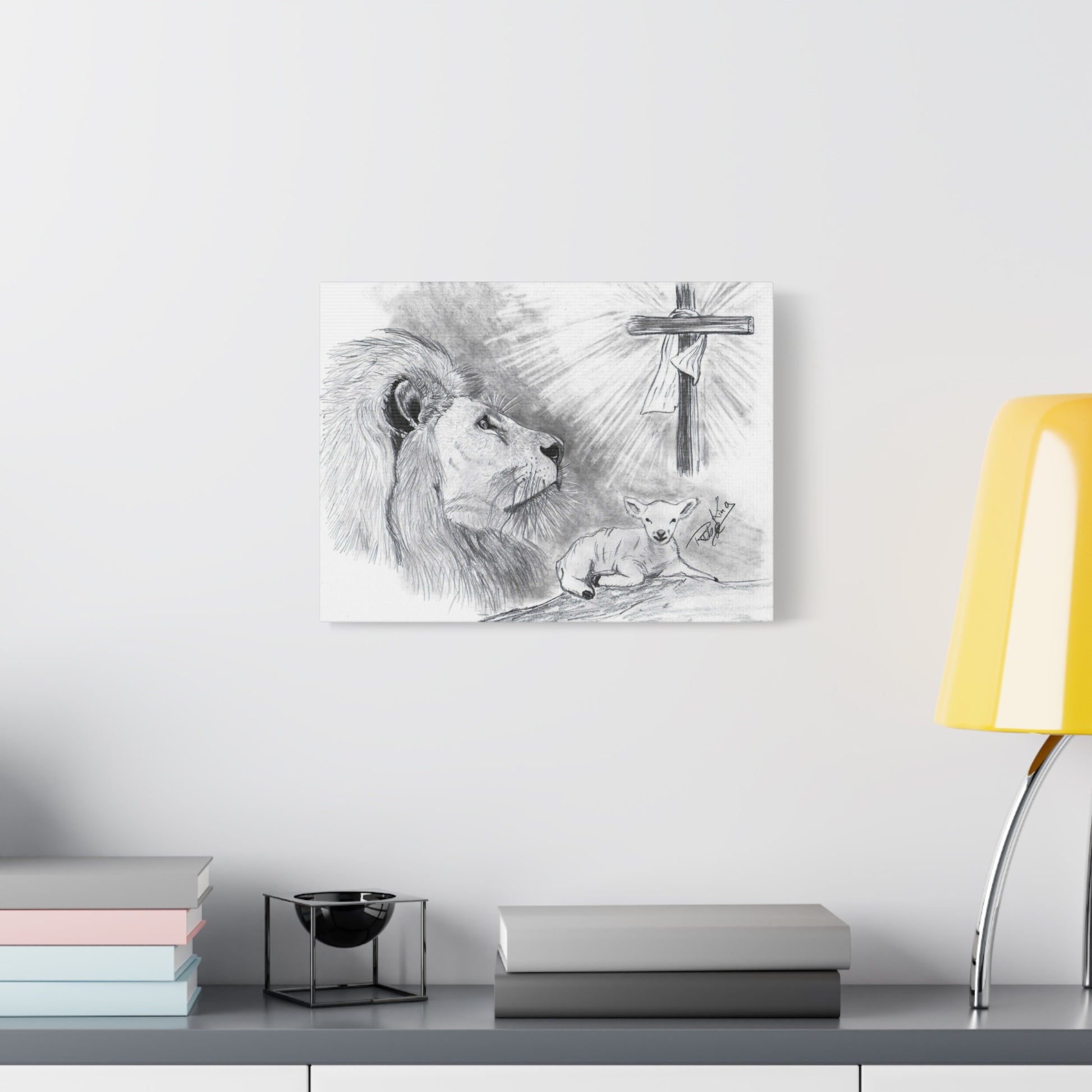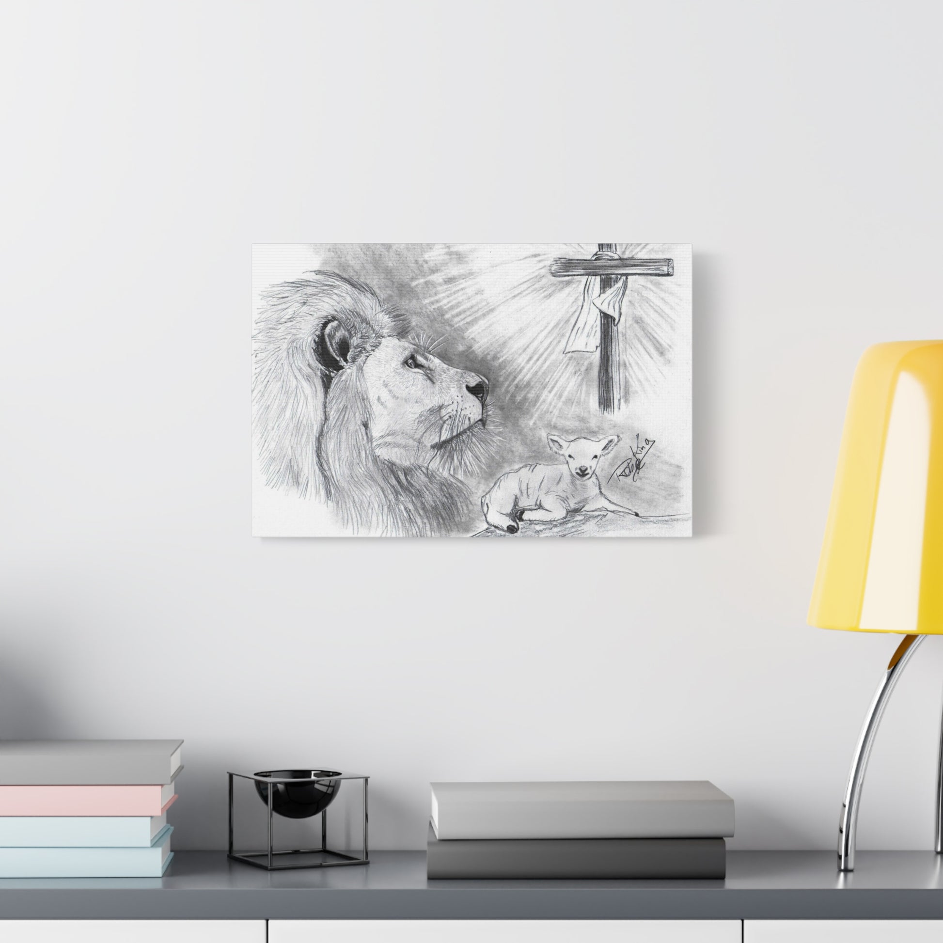 “Lion and the Lamb” – Christian Symbolism Pencil Canvas Art