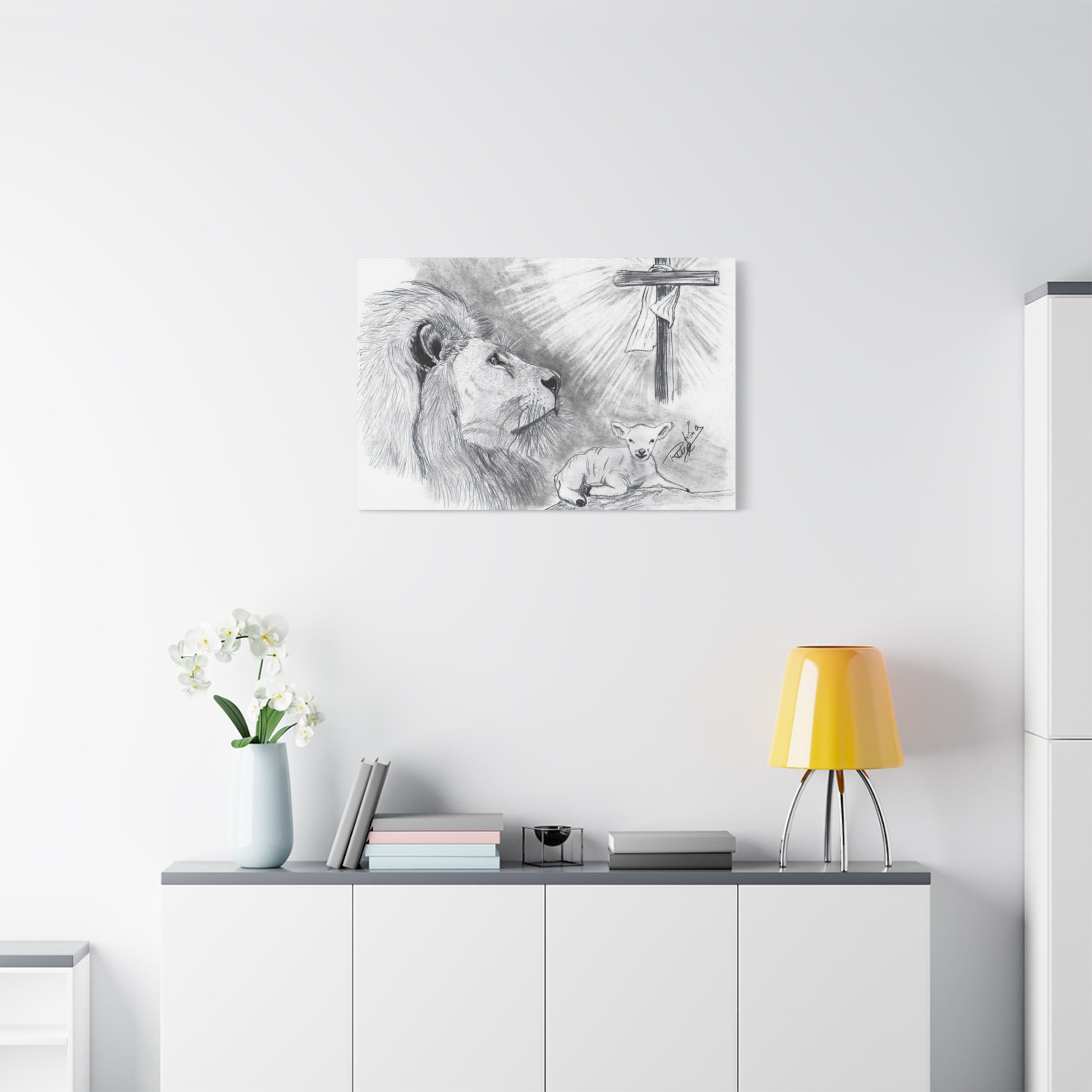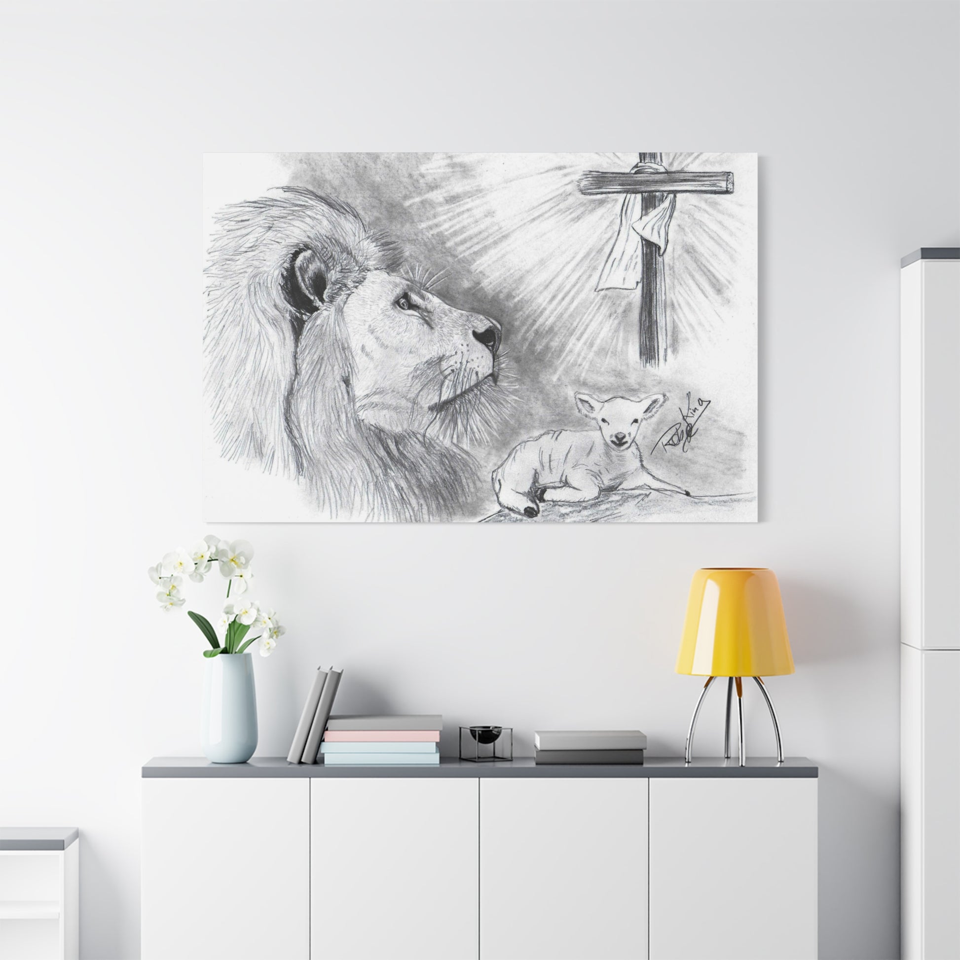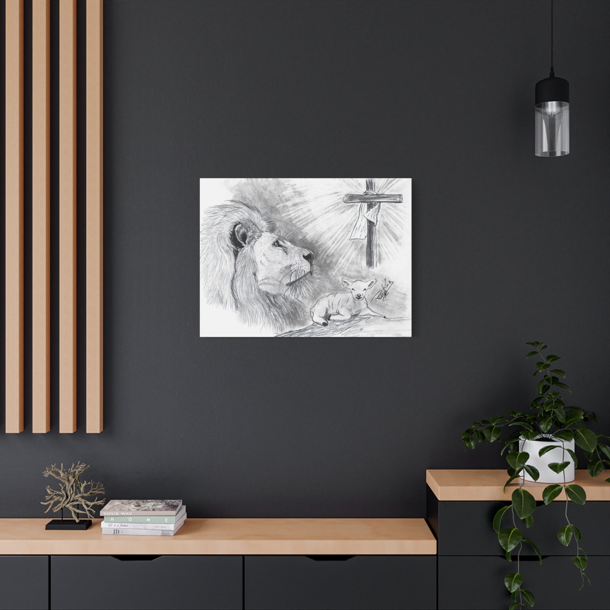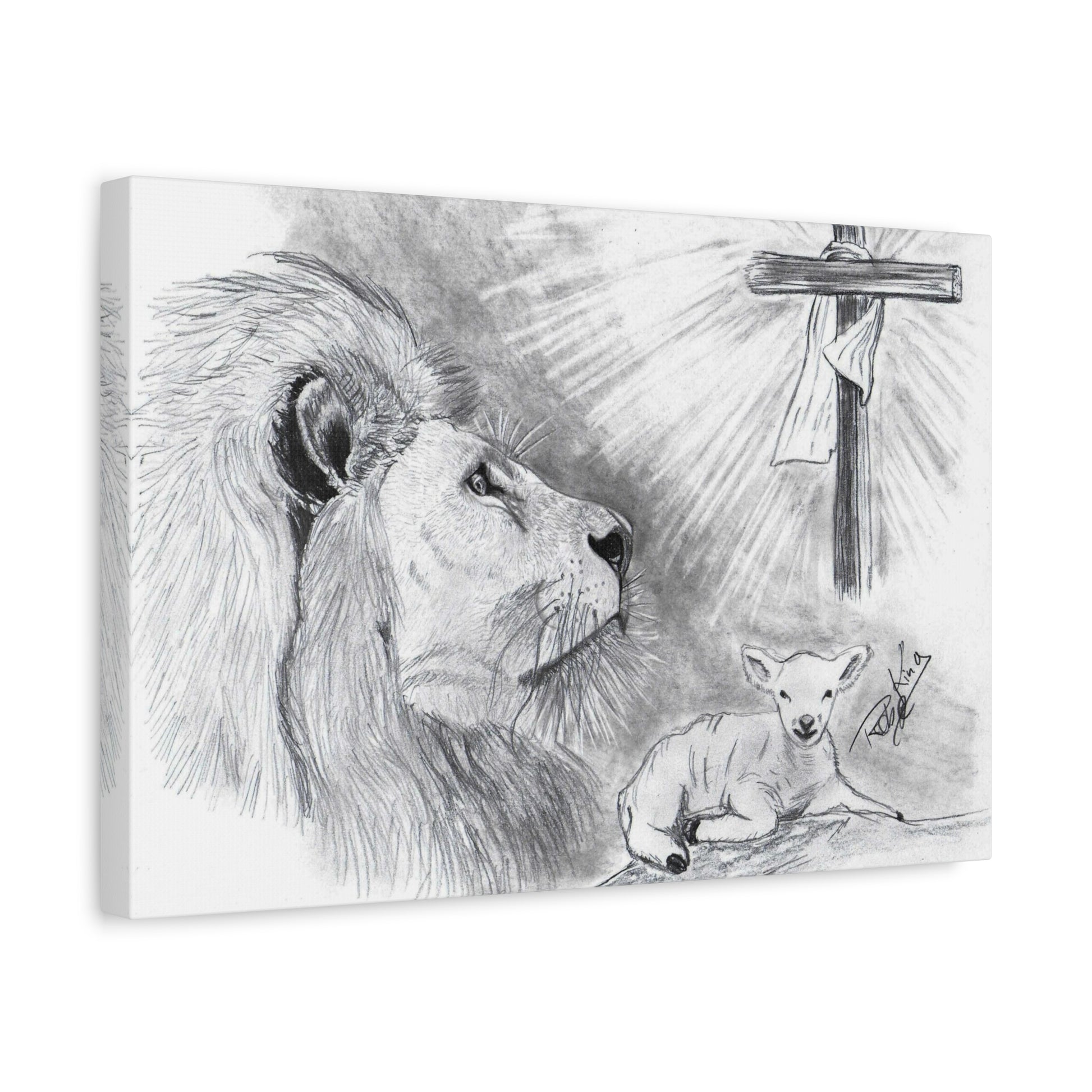 “Lion and the Lamb” – Christian Symbolism Pencil Canvas Art